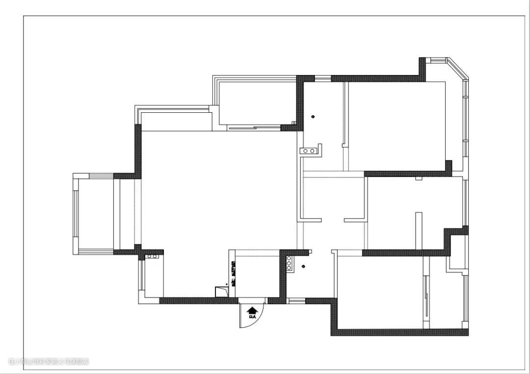 平面设计图设计改造:将入户门右手边位置打造一个玄关,为避免直接正对客餐厅,做了一面隔墙,用于阻挡空间实现,起到一个空间缓冲的作用。