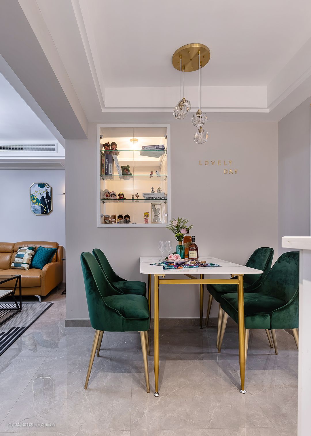 餐边柜设计保留了壁橱的设计手法,利用玻璃做成玄关加上灯光效果,清透敞亮,充分节省空间,又保证了采光充足。