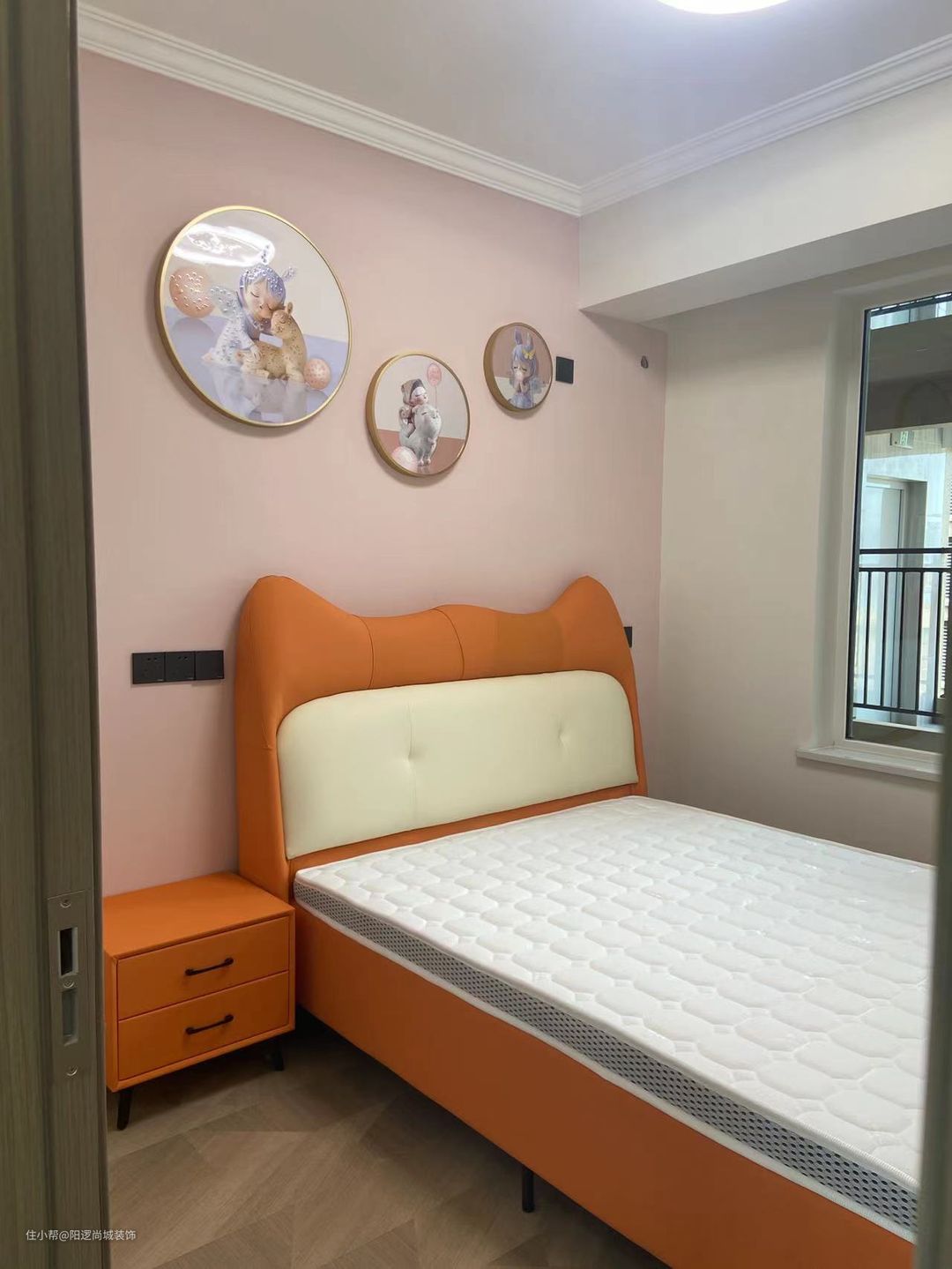 女儿房间,粉色系油漆,加上橙色的儿童专业床品,朝气而活泼。