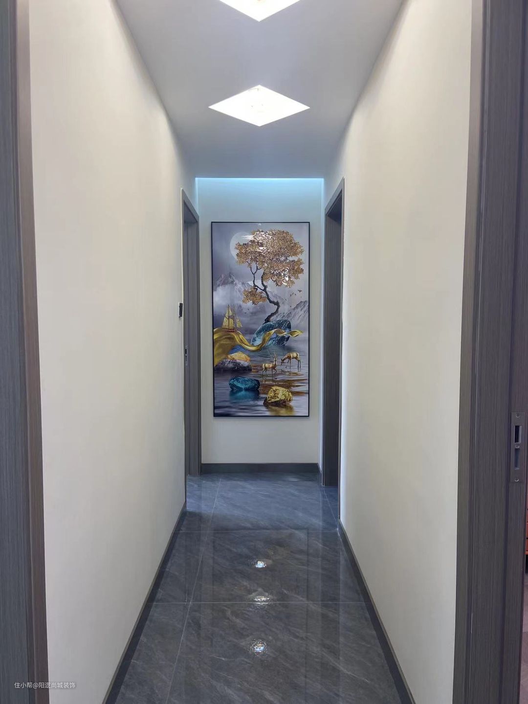 走道部分设计的吊顶,菱形的设计,让走道看上去不长,玄关挂画,好看