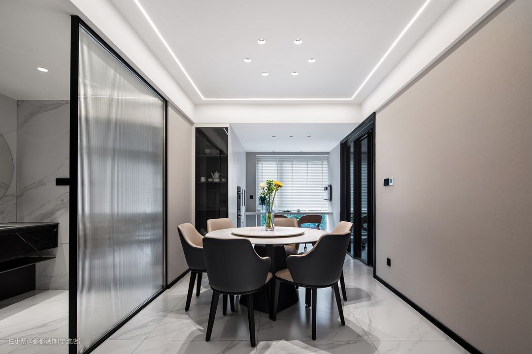 米色和黑色拼接的餐椅映入眼帘,跳跃式的色彩搭配,让稳重的空间多了一丝热情,双层圆桌上摆放着精致的花束,品一杯好茶,让心静下来,给餐厅空间增加更多的仪式感,体验更精致的品质生活。