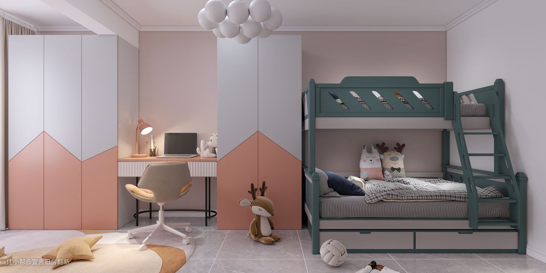 不用多说,也能看出这是女孩房的设计,造型衣柜还是满独特的,实景也很好看。