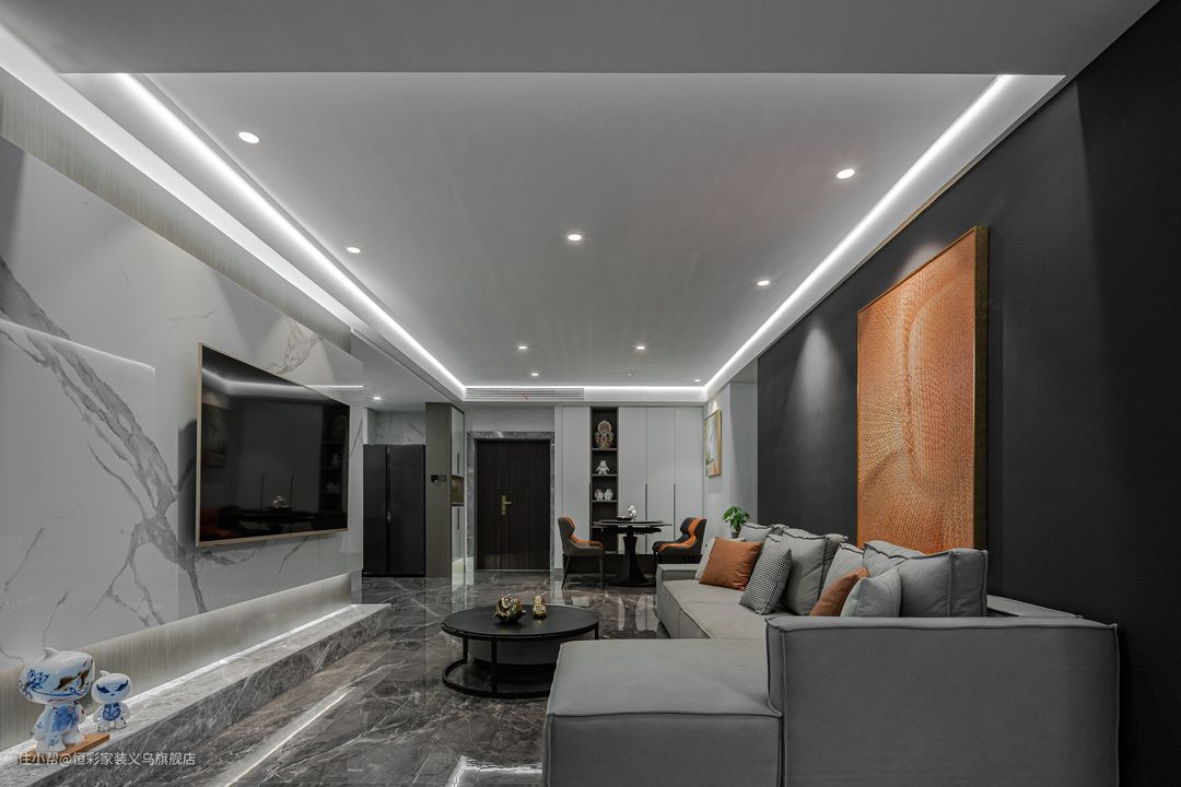 高级灰+无主灯设计,这样的轻奢客厅高级感拉满