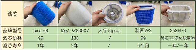 就后期耗材来看,airx H8和IAM是划算的,其次是科西W2和352H70,大宇可以根据自己需求更换,没有具体数据。