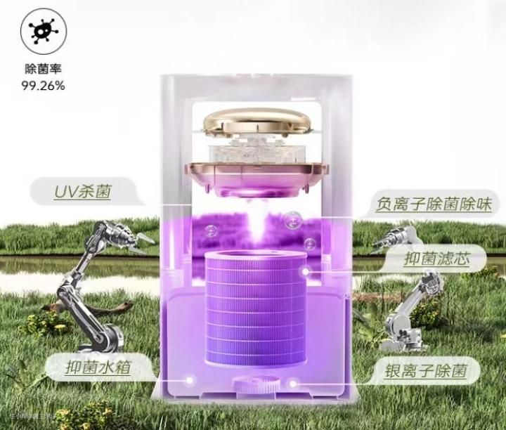 airx H8:采用全水路五重抑菌设计。1️⃣抑菌滤芯,可以有效过滤水中的各种杂质,抑制霉菌的滋生;2️⃣抑菌水箱;3️⃣活性银离子,可以做到深度除菌,同时也是抗菌很重要的一部分,抗菌率高达99.9%;4️⃣UV杀菌灯,进行全方位照射,可以杀灭水中的多种细菌,除菌率达99.92%;5️⃣负离子,内置负离子模块,可以释放出高浓度负离子群,沉降粉尘,除菌+祛味,双重功效。总结来说,就是只要是接触到水的部分都能做到抑菌除菌。