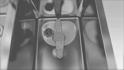 在热水浸泡软化、洗涤剂、喷射水流的联合作用下,使餐具表面的油污和残渍分解并脱落,达到清洁目的。最后,利用加热器的余热烘干餐具。