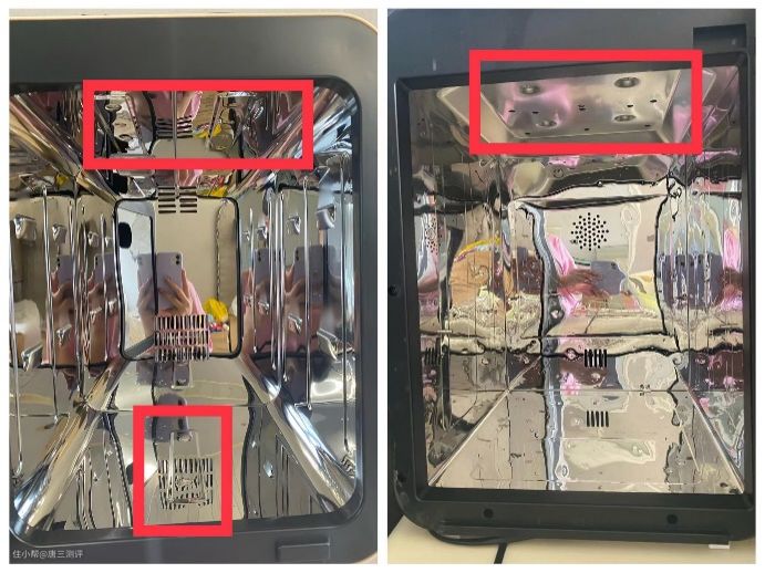 总功率为150W,消毒灯功率为8W,烘干功率为142W,烘干效果可参照对比测试的出来的结果,在30分钟内烘干是完全没有问题的。由于柜门采用玻璃材质,所以反射效果没有6面,而且紫外线透光可能对人体有危害。还升级了8K菱形镜面,凸面发射,但是折射效果相比8K镜面不锈钢来说不如后者。