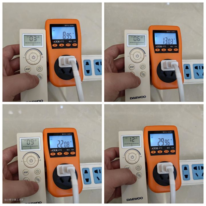另外这款大宇无叶风扇还有一个优势,那就是功耗低,这也是直流无刷电机的一个优势。 就算是最高档位工作时功率也不过只有30W左右(存在一定偏差),最低一档的功率仅仅只有5.9W,就算每天工作5小时,一度电就能使用一月之久,非常的节省。