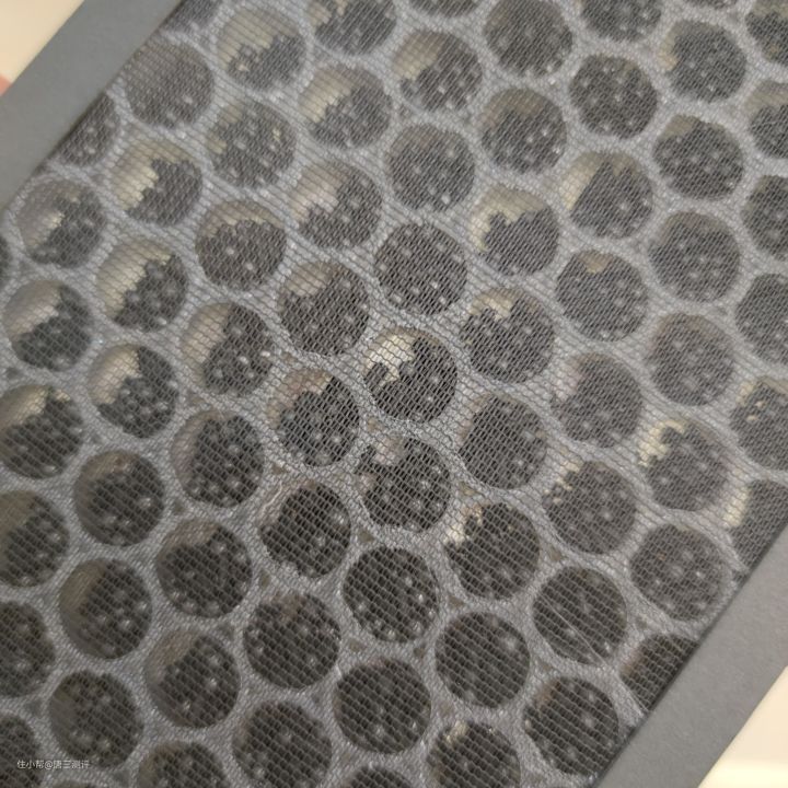 打开网格过滤网之后就可以看到里面的活性炭过滤网。 这款大宇无叶风扇采用六重净化系统,分别为负离子、纳米矿晶、活性炭、HEPA滤网、银离子、紫外线这六种,可以快速捕捉并过滤漂浮污染物,例如花粉、毛发、烟尘等。净化有害气体,例如甲醛、氨、苯、TVOC等。还可以有效破坏细菌蛋白质外壳,照射穿透细菌DNA使其失去繁殖功能,杀菌率高达99%。没想到小小的风扇作用这么大。