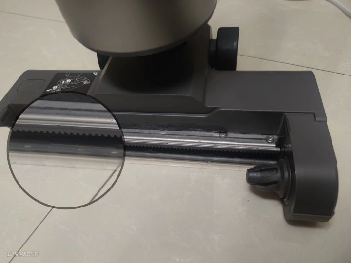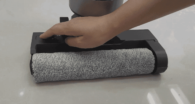 吸拖组件的设计相较以往传统洗地机也有所提升,改进了传统洗地机由正中位置自上而下安装滚刷的设计,采用了单边超窄边设计,从侧面插入安装,这样可以使得沿墙、踢脚线的清理相对来说更加到位彻底。