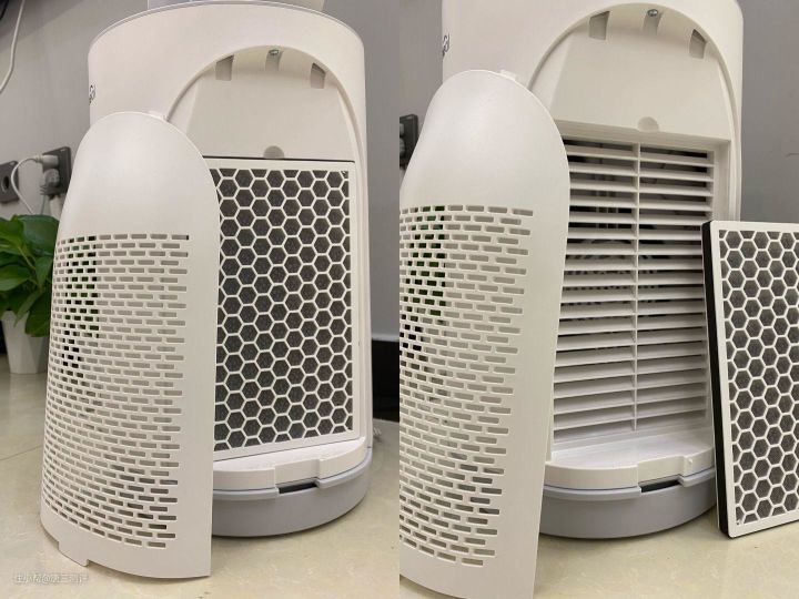 打开底座两边的过滤网盖,活性炭过滤网就映入眼帘了。
