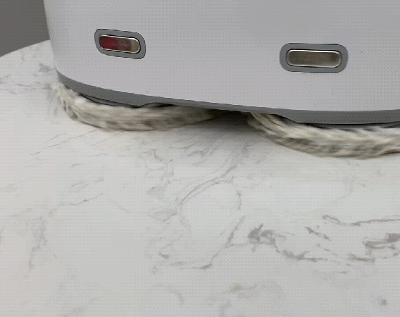 拖地方面我用口红代替生活中比较顽固的污渍,如视频所见,也是干干净净。而在拖地时,机身会产生一个约14N的向下压力,使得拖布与地面贴合的更紧密,而且两块拖布以200转/min的速度对向旋转,这样的工作方式比起传统扫地机器人来说,清洁效果确实更好一些。