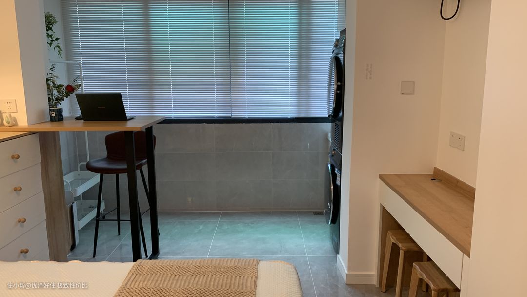 设计后,一个小空间就变成了一个卧室,窗户大光线也好,也是读书写字的地方。 厨房,餐厅,客厅从北向南,都在同一个空间,看去视觉效果更明亮大方。 我与妻子的主卧,我是最喜欢的。有书桌,洗衣晾晒区,梳妆台,应有尽有。