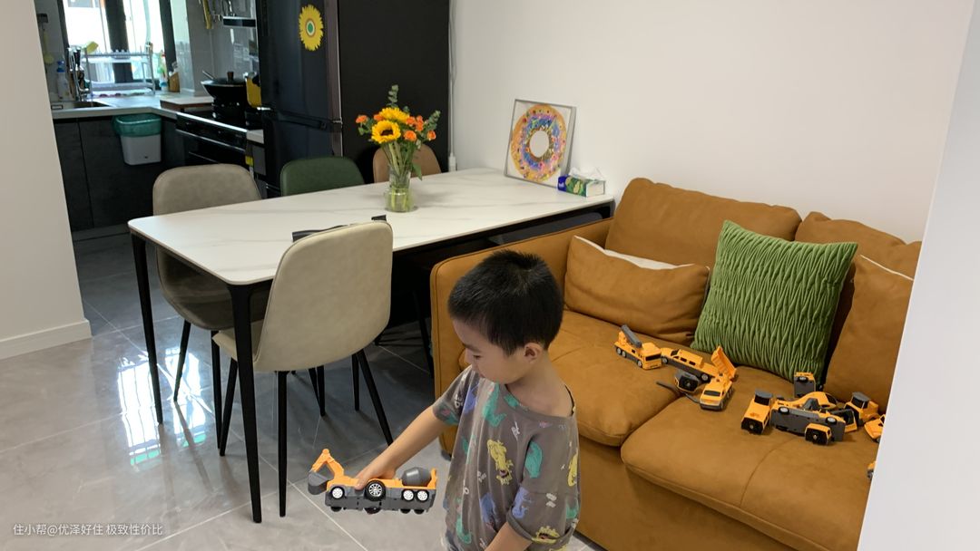客厅虽然小,小孩们也会在椅子上面吵吵闹闹。 大儿子看着手机刷着里面的内容好吸引人,小儿子玩着手里的玩具