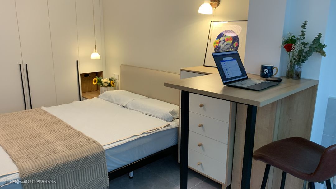 我的卧室,是我与妻子讲私密话的地方,温馨又浪漫。空的时候可以靠吧台做做聊聊天,忙的时候可以拿个电脑坐这里工作。