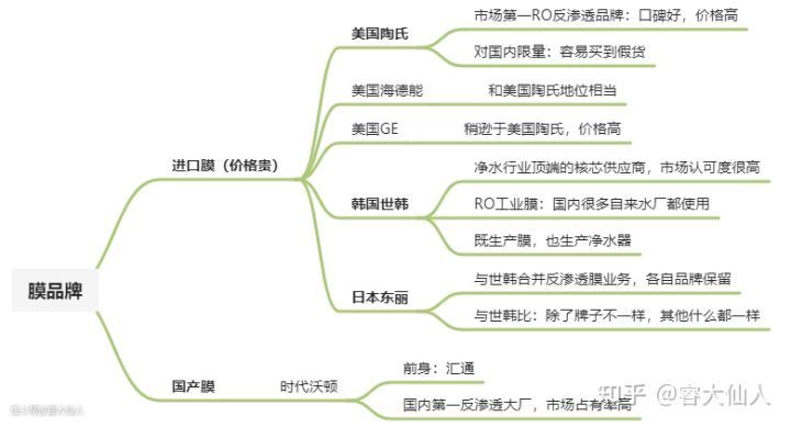 上图为世界上比较有名的膜品牌,膜选择时,首选世韩、东丽、陶氏、时代沃顿(汇通)。