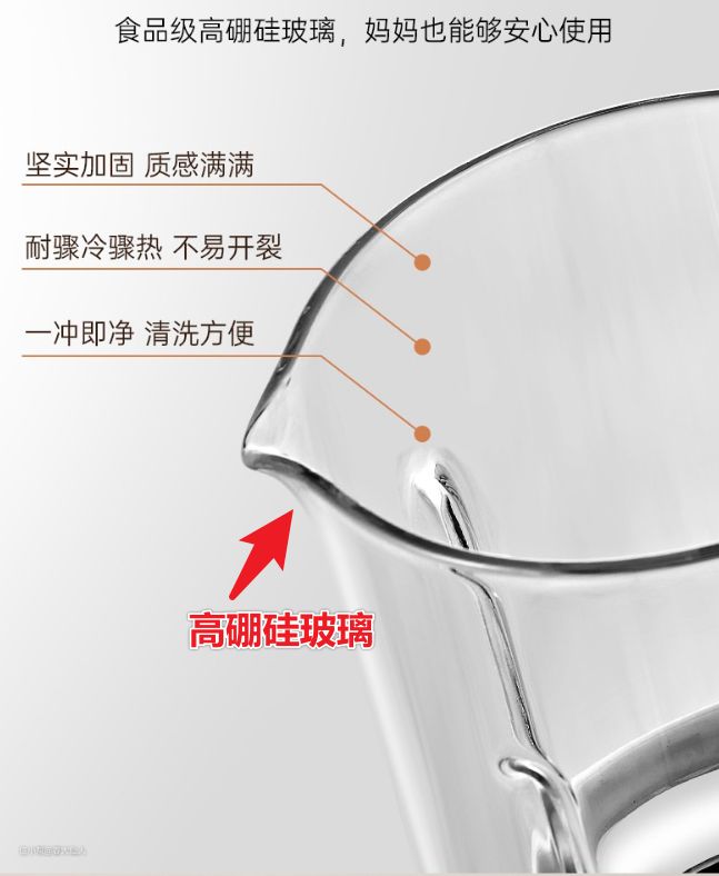 - 高硼硅玻璃:最推荐,可观察搅拌细节,不会释放有害物质,缺点就是稍微重一些