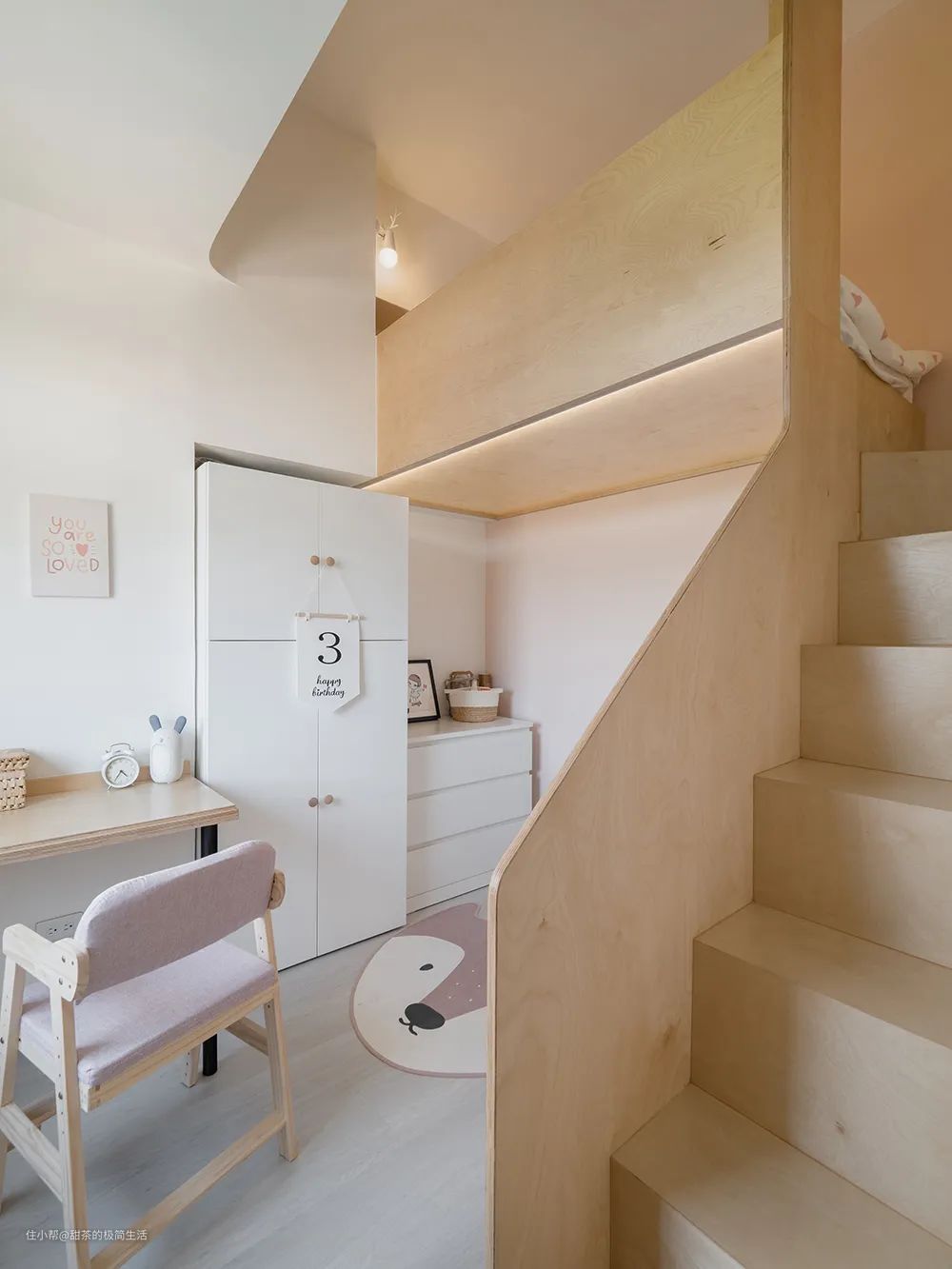 - ①借助层高优势,做阁楼储物间,以提升屋内的收纳能力。
