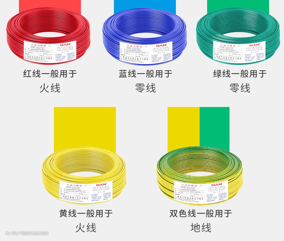注意线材的颜色,火线一般是红色或黄色;地线一般是双色;零线一般是蓝色或绿色。