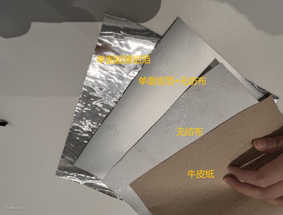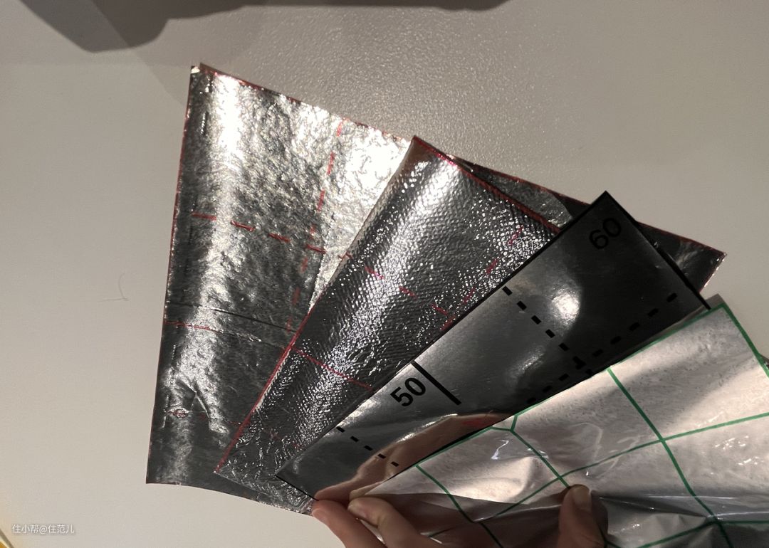 TIPS:常见的反射膜有牛皮纸的、无纺布的、铝箔单面、双面的,双面铝箔纸会比较厚,看背后。