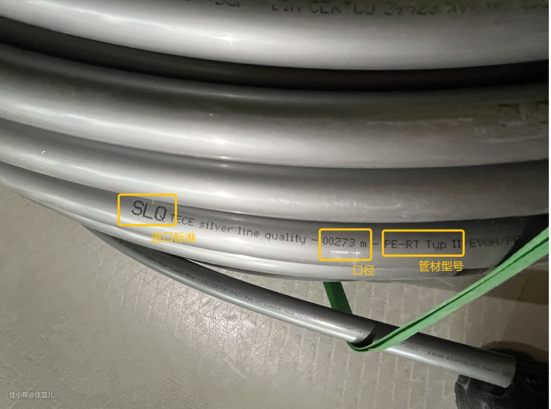 建议管材到家还是打开包装,对着表格验收下是不是合同里的型号,副管的外层一般都有类似于的型号串列。如下图