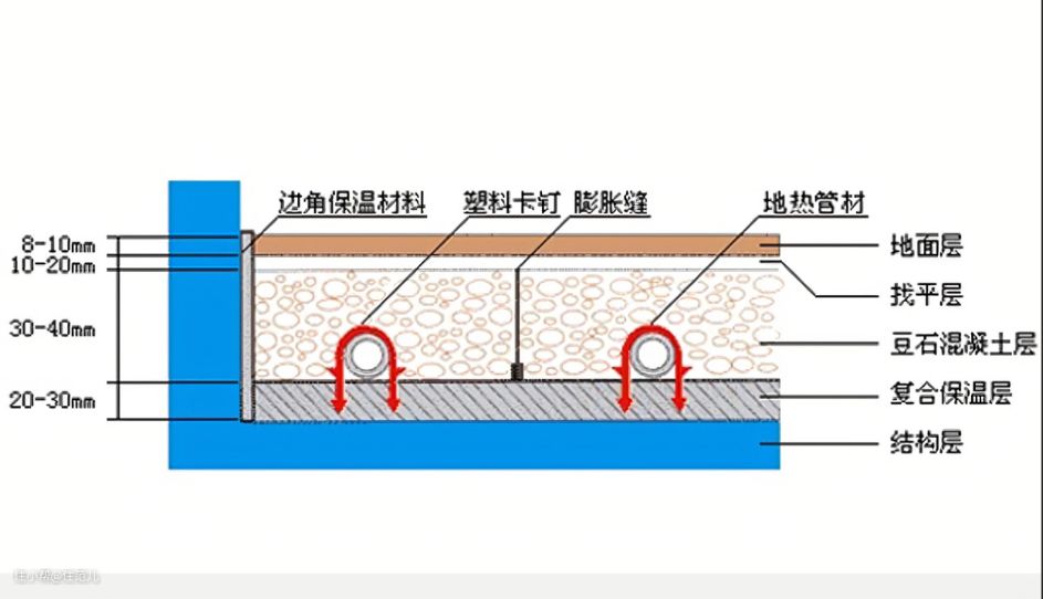 从占用层高上看,电地暖更有优势,不铺回填层,只需3cm;而水地暖至少需要5cm,层高的每1cm都不能浪费啊!!