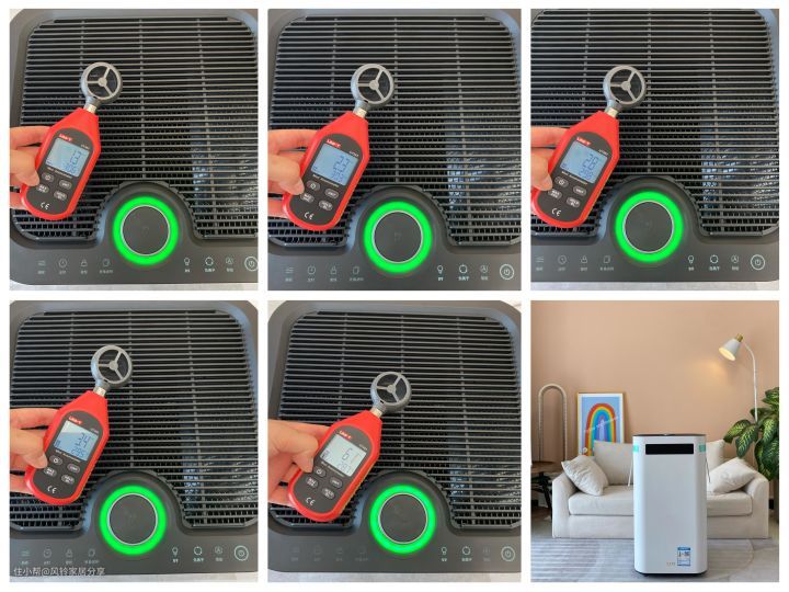 通过测试结果来看,一档到四档的风速都是循序渐进的,但是四档到五档的风速直接提升了近一倍。 一二档的风感很柔和,没有什么感觉,比较适合晚上休息或者是中午小憩,当然睡眠模式也是可以的,三四档的风速明显变快,适合平时打游戏抽烟时或者是工作时使用,五档风速是最快的,如果需要将室内空气快速净化可以调到这个档位,不需要几分钟就净化完成了。