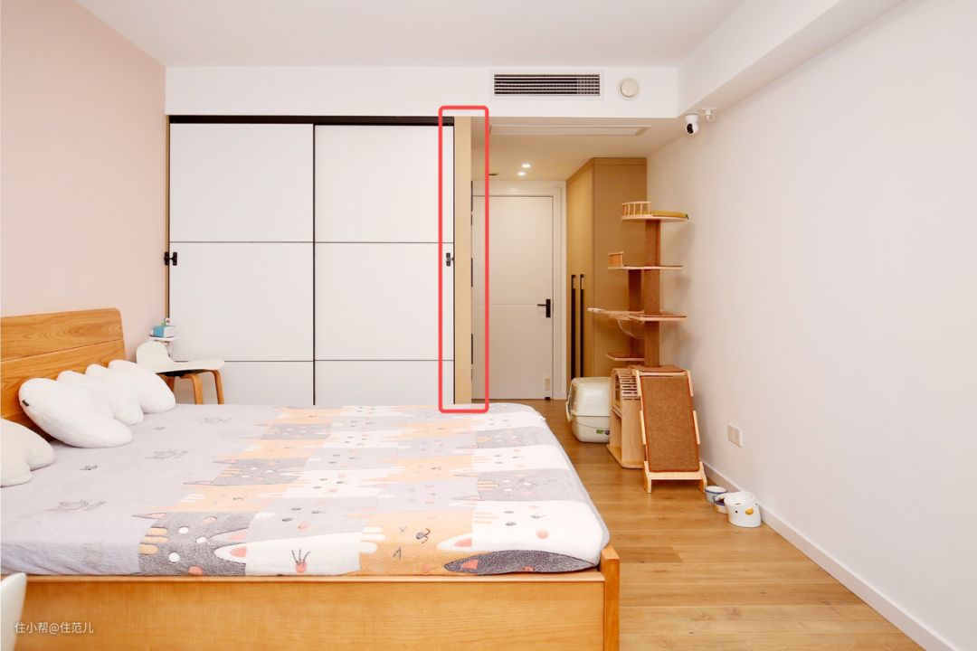 还有的朋友干脆直接将靠床的柜子定制成了隔板,当作床头柜,简直是太有创意了。