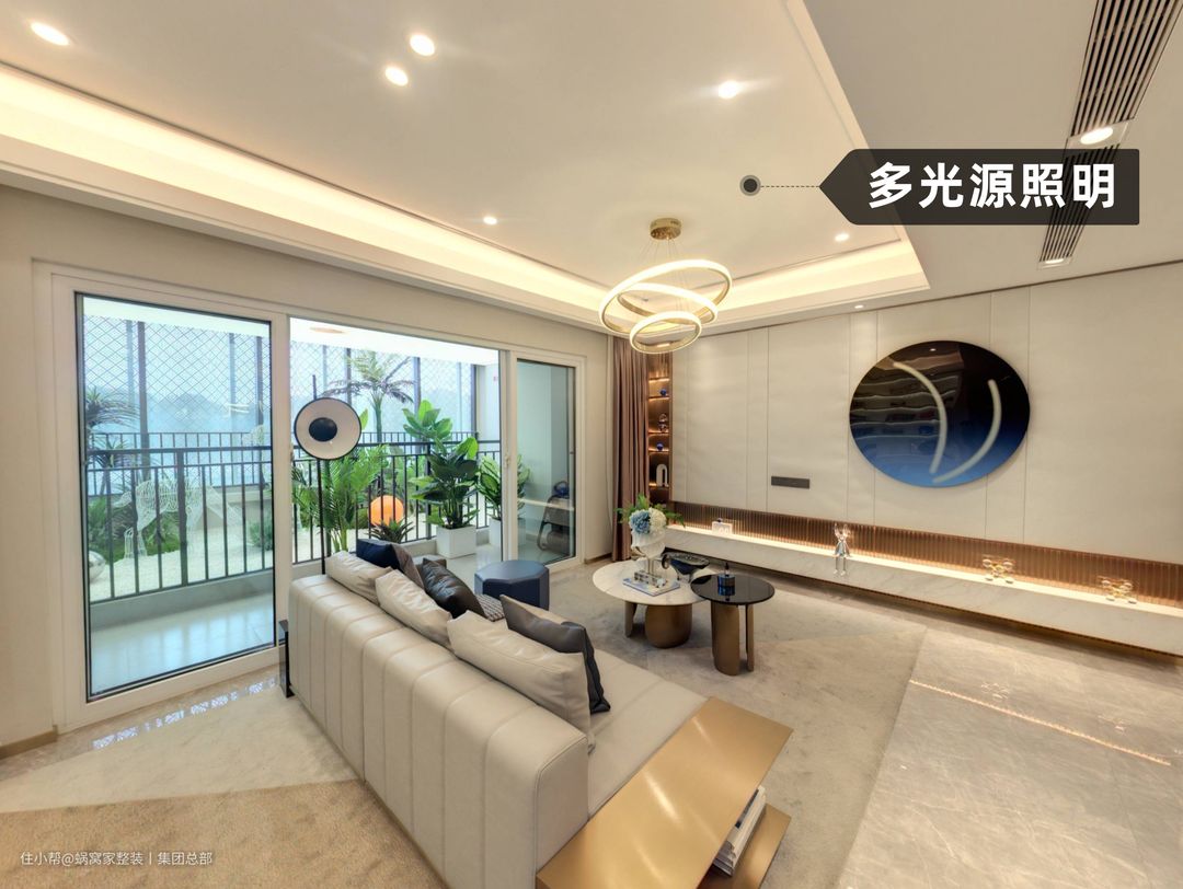 而筒灯一般运用在客厅无主灯的设计上,通过天花板上均匀分布的筒灯,实现明亮舒适的空间照明效果,并且在多光源的照明下,凸显整个客厅的明亮舒适,不会产生昏暗的死角。