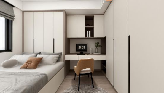 多功能房的设计比较多元化一些,有书桌也有卧榻,同时还有各式各样的储物功能,节省空间还有效提高生活舒适度,偶尔在这里静躺思考人生也非常不错哦。