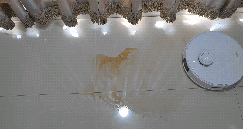 从动图数量应该也不难看出,追觅和石头一个动图就OK,云鲸和科沃斯清理的时间比较长,所以分两个动图。 追觅是四款机器人当中表现最优秀的,一遍就可以把地上的生抽搞定,并且没有出现抹的满地的情况,倒不是说追觅要比其他型号拖地能力强很多,有个重要的因素就是追觅的地刷胶条起到了很关键的作用。