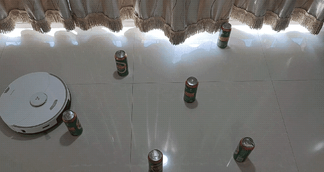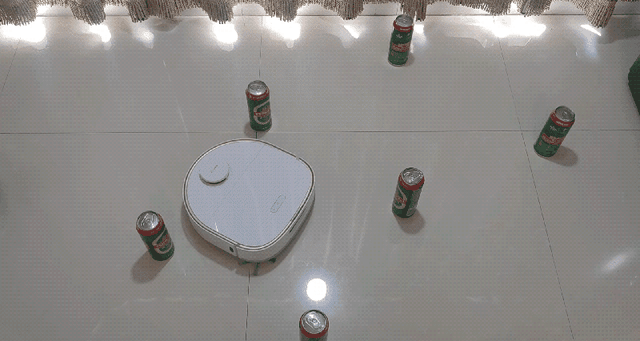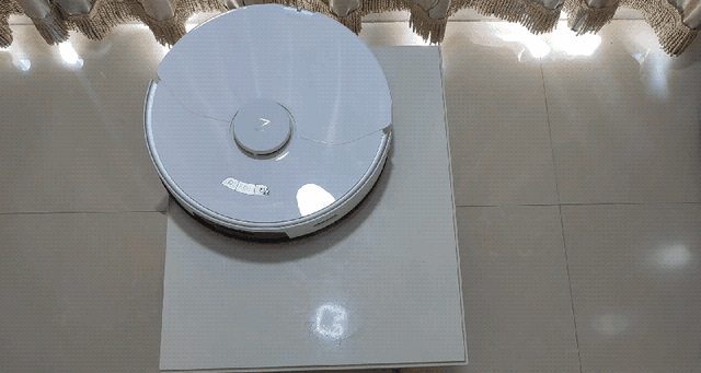 追觅、科沃斯和石头的防坠能力不相上下,悬崖传感器非常灵敏,一旦识别到悬空,马上就退回,虽然桌面面积很小,但是三款机型基本都把每个方向试探过了,很聪明。