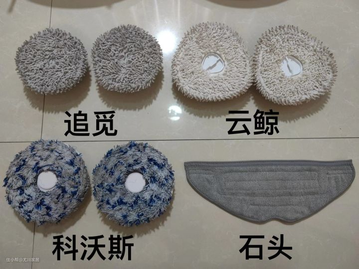 追觅:双拖布180次旋转+10N增压拖地 云鲸:双拖布180次旋转+10N增压拖地 科沃斯:双拖布180次旋转+10N增压拖地 石头: 追觅、云鲸和科沃斯都是旋转磁吸式设计,其中云鲸和科沃斯的拖布采用魔术贴可单独拆卸的设计,追觅不可拆卸。 科沃斯则采用较细的纤维材质,浅蓝与深蓝穿插一起。