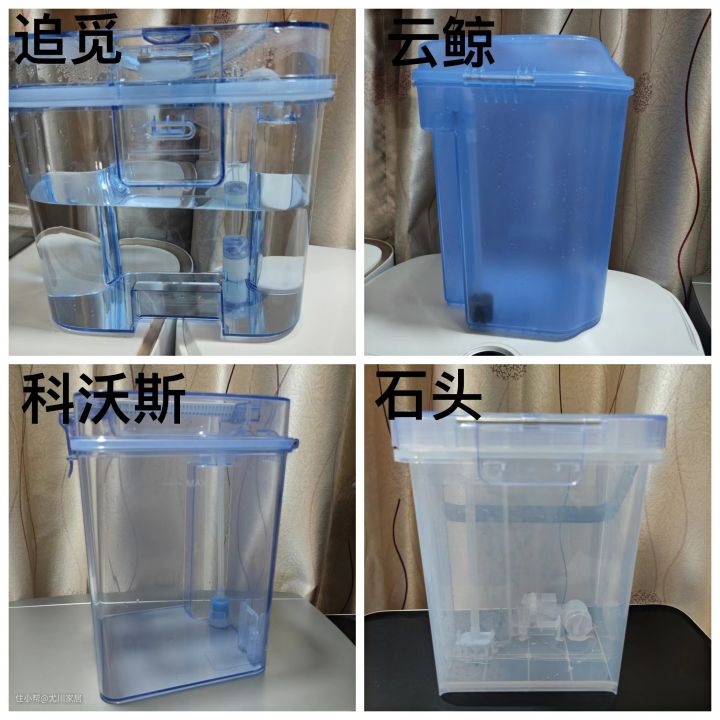 追觅清水箱4.5L,污水箱4L 云鲸清水箱5L,污水箱5L 科沃斯清水箱4L,污水箱4L 石头清水箱2.9L,污水箱2.5L,机身自带水箱200ml 水箱容量最大的是云鲸,追觅第二,科沃斯和石头次之。其中云鲸是首款可以升级安装自动上下水的机型,科沃斯在6月份也会升级推出上下水模块,希望追觅和石头后续也能推出智能上下水装置。