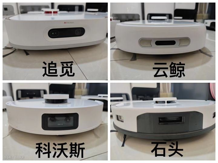 本文机器摆放顺序为追觅、云鲸、科沃斯、石头。图片没有标记型号的也是这个顺序。