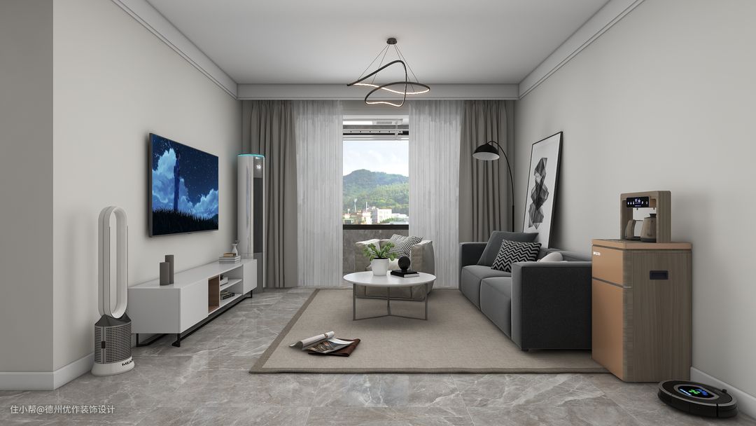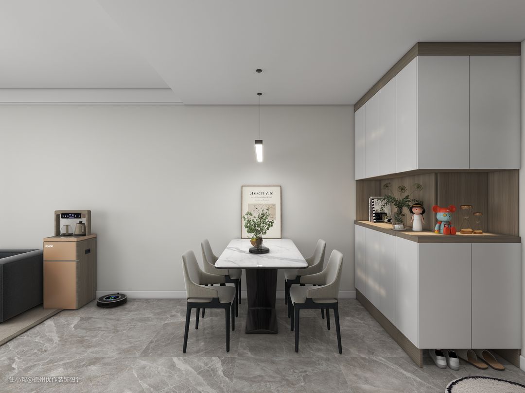 扫地机器人、饮水机根据业主需求进行合理摆放,可以看出空间并没有多余的物件,业主实际使用起来也是方便顺手。