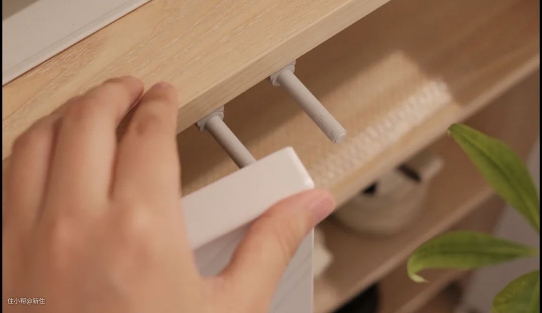 反弹器:就是个柜板上装反弹器,靠反弹的力,把柜门顶出来。