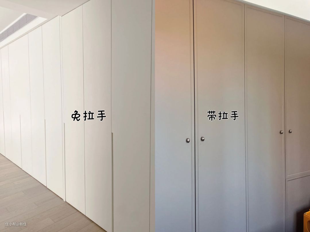 装拉手,就意味着多一些,难擦的清洁死角,尤其是厨房,装拉手,会难清洁许多。
