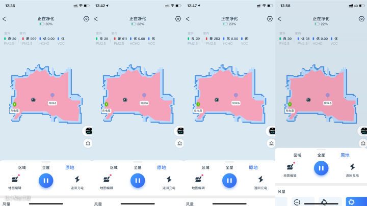 沁宝很聪明,识别到沙发就马上转头了,面对比较复杂的环境沁宝也能做到游刃有余。 即使在地毯上沁宝的移动也是很顺畅,好像一个小人在巡视家里的空气情况,没啥溜溜弯找找有污染的空气把他们净化掉,确实很不错啊!