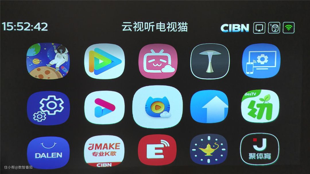 神灯采用的是RK3399芯片(双Cortex-A72+四Cortex-A53 大小核CPU结构),2GB运存+32GB存储空间, 800ANSI流明以及65W的用电功率,支持最高4K分辨率以及 60-150英寸的投射画面,搭配AOS投影系统,AOS是这台达伦神灯一个比较特别的系统UI,跟以往我所接触过的投影仪,开屏采用强制性应用平台不同,AOS以全开放式的APP列表开屏展现方式,没有强制性,这方面应该很符合普遍用户的使用习惯,所有应用APP排列呈现,想用那个就点那个,无需曲折迂回多层菜单翻找,便利省心,同时出厂自带很多丰富实用的APP,如教育应用、益智游戏、音乐应用及各种主流影视APP,省去自已下载的时间,当然,如果实在没找到自己平时习惯使用的应用,通过在线下载安装也是很便利的。