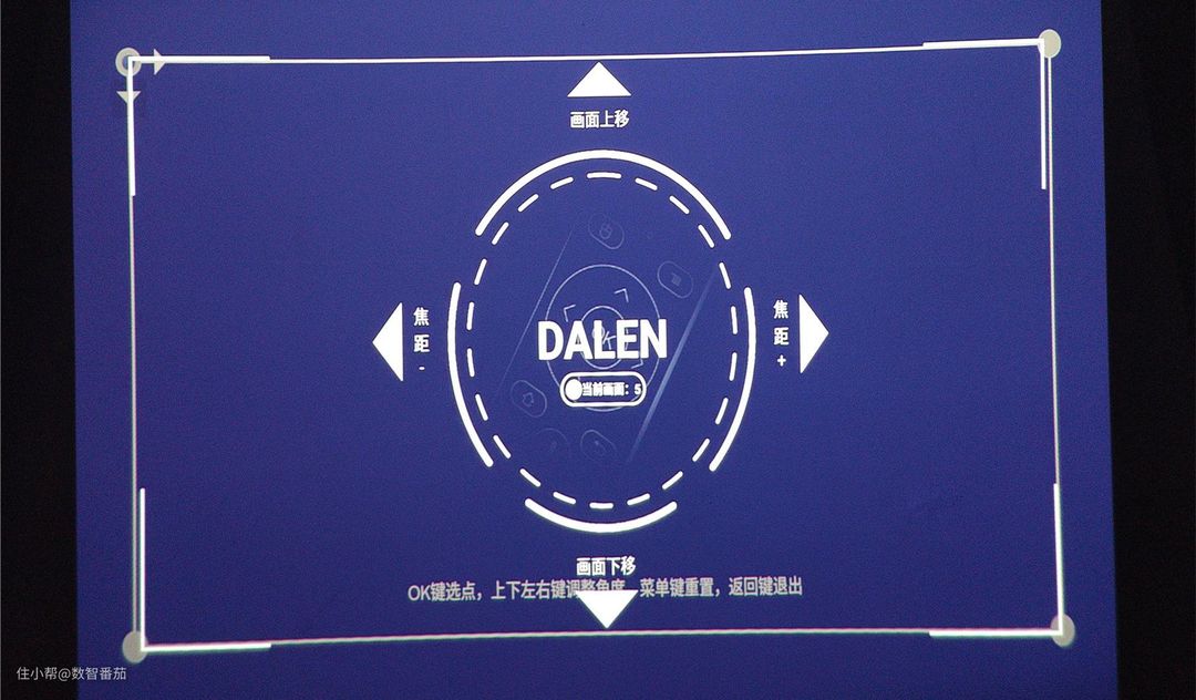 达伦自研的短焦光机,实测1.6米距离的投射大约为90寸之间,1.7米应该能达到100寸范围,配合自动变焦/对焦、手动调整以及梯形纠正和5档宽幅调整,使用起来确实很便捷,同时对于不同人群的观影习惯,5档宽幅数字变焦调整功能真的特别实用,以我1.6米投距为例,可在65左右-90寸进行调整,无需跟一些传统投影仪般,需要移动距离来实现宽幅转变,另外其下移可调距离,以我这自建房的3.35米高度,都可以向下投射到半墙高这个范围,这个轴心以及变焦/梯形纠正技术真的很出色,真的是一步到位。