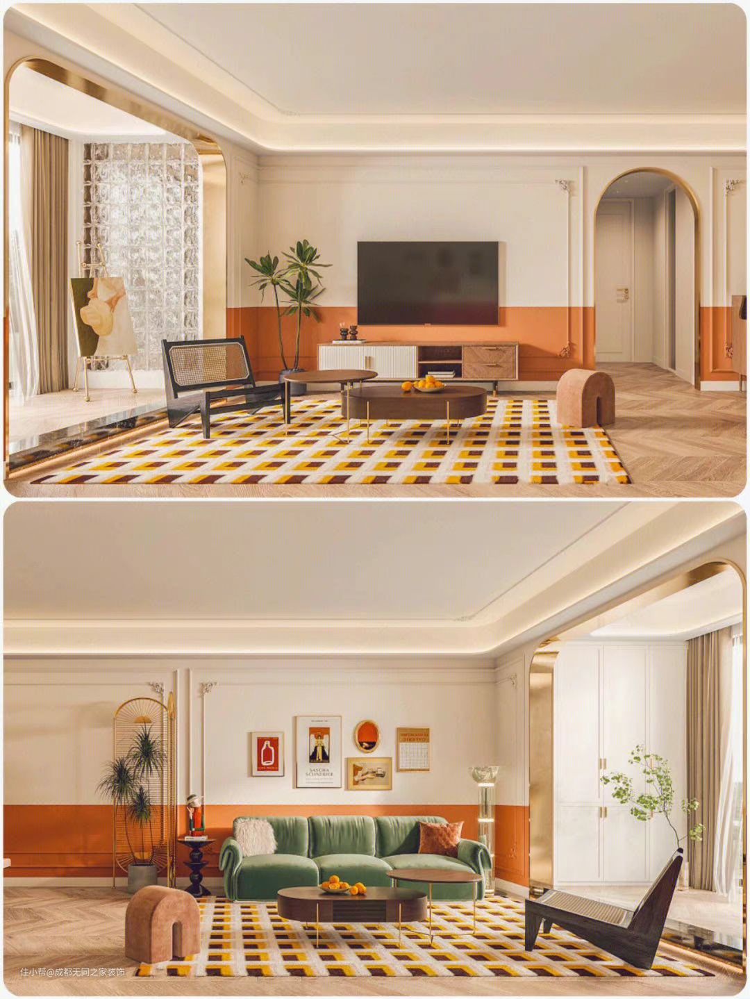 法式复古·橙色+复古绿碰撞出的绝美小家。