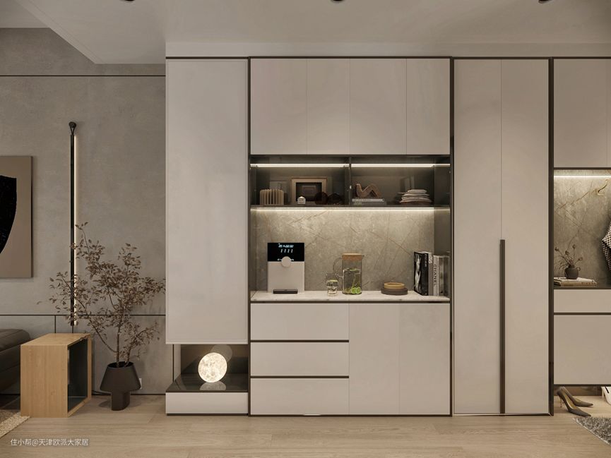这个风格最大的特色就是极具品味和大气感。利用金属、大理石、玻璃、皮革等材质,搭配设计出高级、精致的氛围感。
