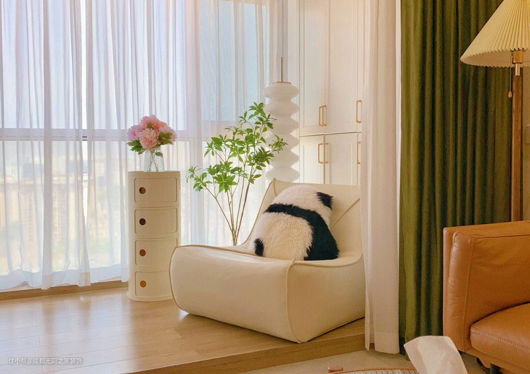 阳台划分出休闲角的区域,轻松打造专属小花园女可以悠闲地读书瞌睡南舒服地躺平在家配合植物的摆放,增添了生机的同时又能净化室内的空气~