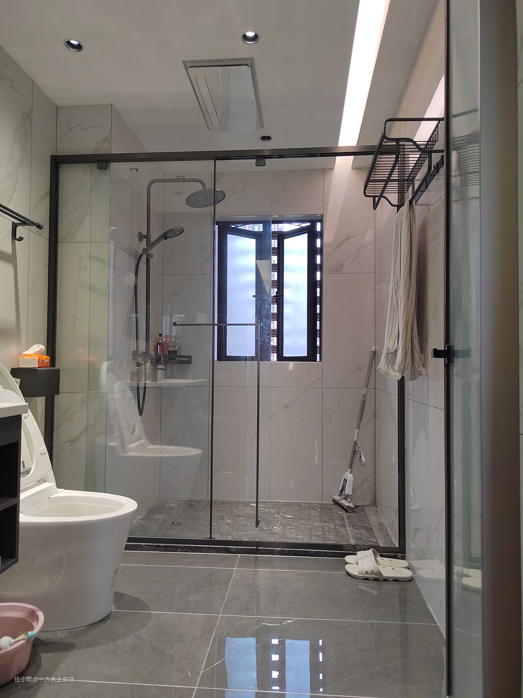 卫生间需要做干湿分离,都是会用淋浴间把浴室单独隔离出来,这样洗澡后就不会弄湿淋浴间以外的地面了。