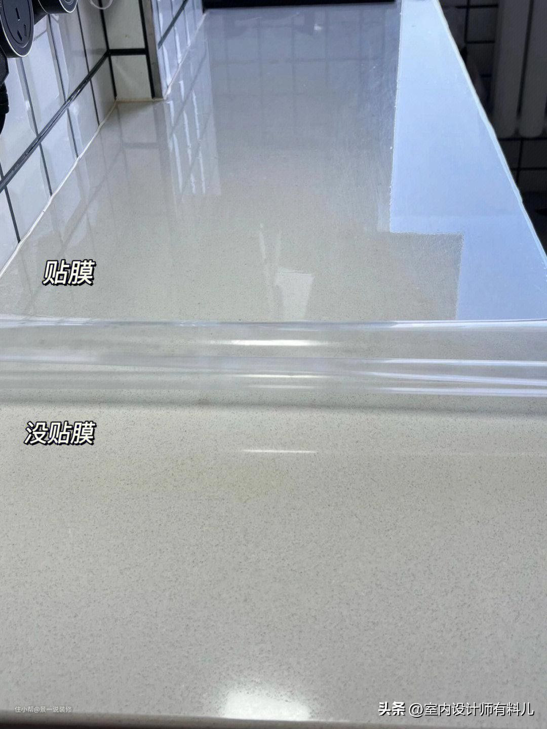 贴完膜后再也不用小心翼翼地切菜做饭了,台面也光闪闪的,还能映照出影子,台面的清洁擦起来也很轻松。