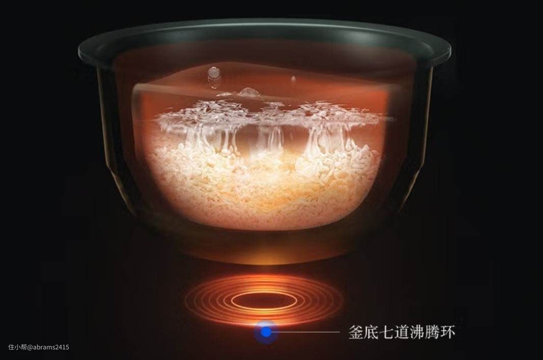 另外,它的釜底共有6道环形沸腾环,可增加米饭受热面积,每粒米间隙也可充分受热。