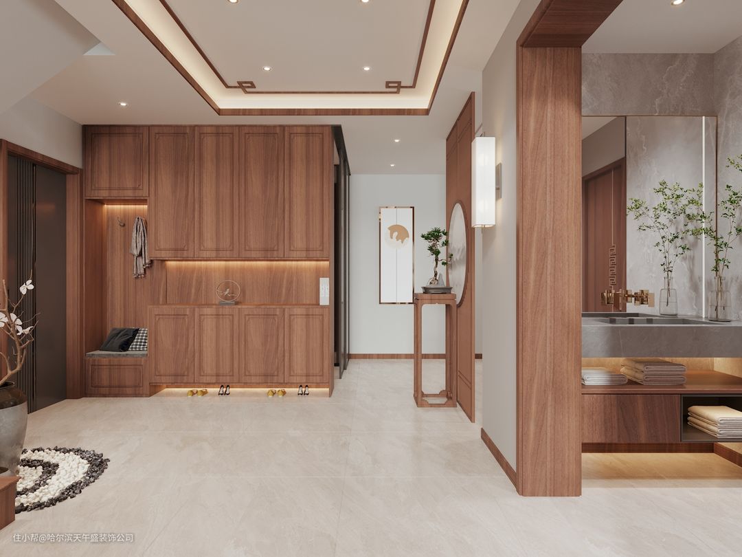 3口人居住,喜欢中式古典元素但不太死板,干净大气为主,储物空间要多一些。