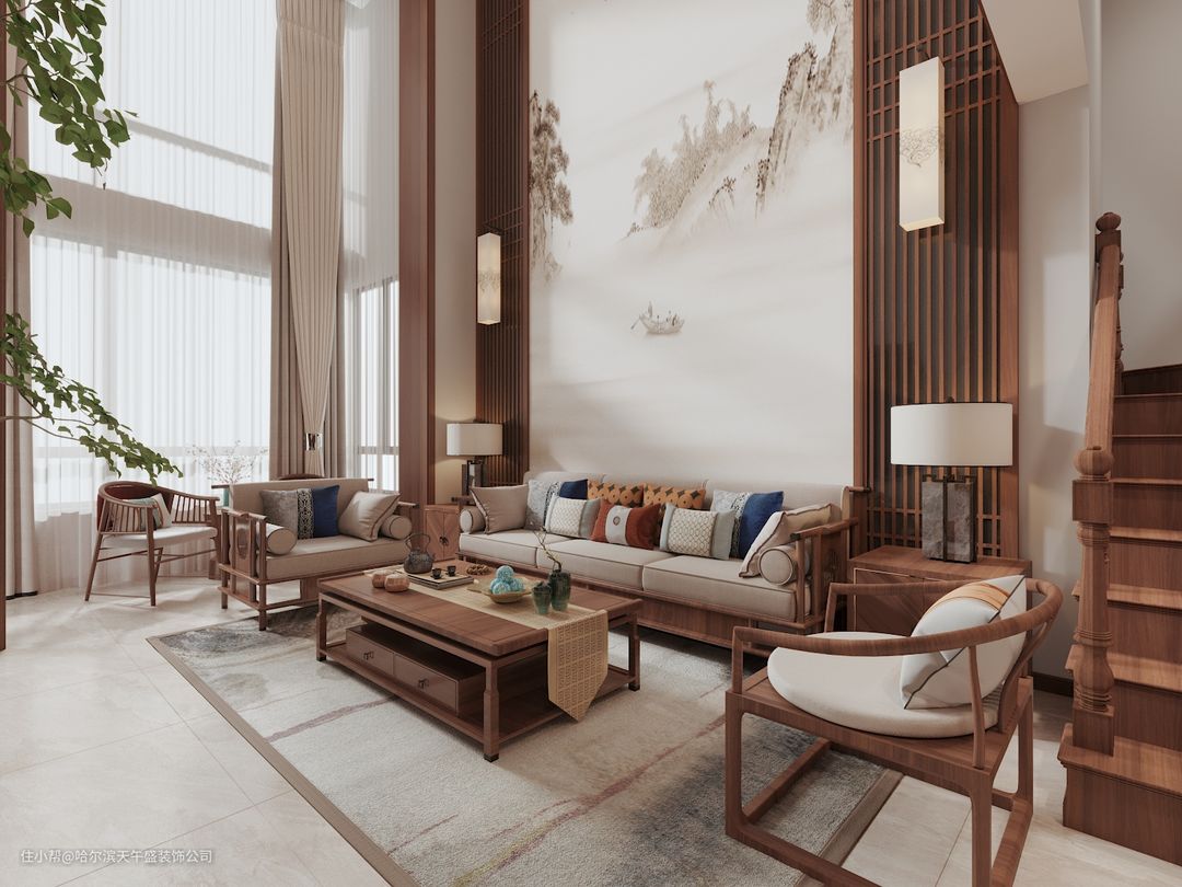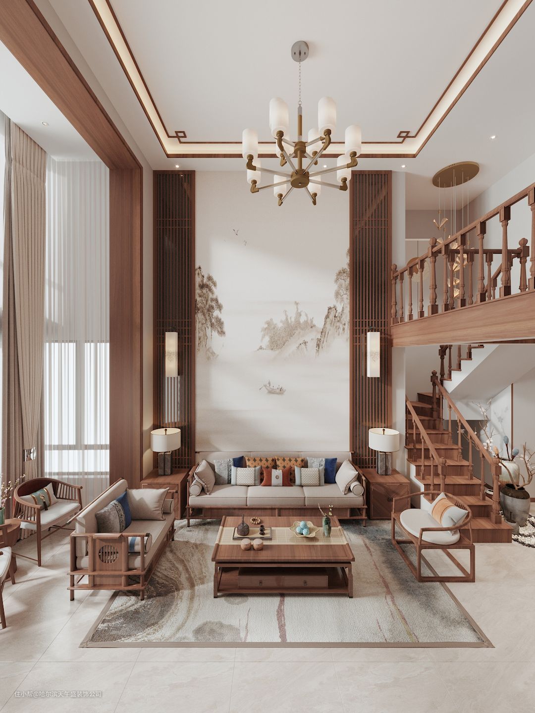 230㎡新中式风格复式楼,装修的事交给老公主导,整体大气美观