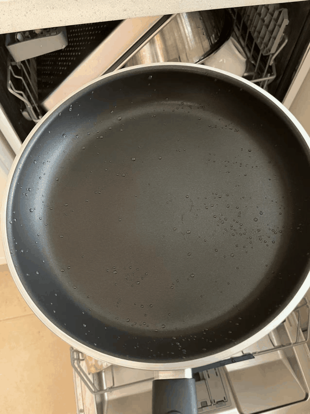 也就是说,不粘锅不能用洗碗机洗,就跟不能用金属锅铲炒菜,不能用钢丝球刷是类似的道理。
